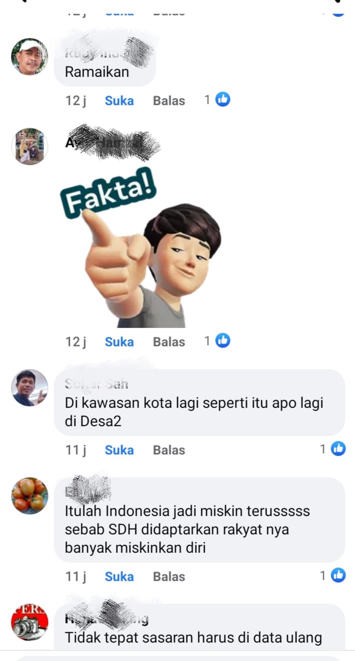 PALEMBANG, MEDIARAKYAT.CO || Pemberitaan tentang penyaluran bantuan sosial (bansos) yang tak tepat sasaran ramai di media sosial. Hal ini memicu reaksi netizen yang menyebut bahwa hal tersebut merupakan fakta yang terjadi di lapangan.