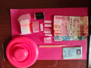 “Selain itu ada juga uang tunai sejumlah Rp. 400.000, sebuah tutup thermos warna pink yang berisikan 1 bungkus plastik klip transparan kosong dan sebuah sendok yang terbuat dari sedotan plastik”, paparnya.