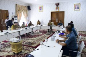 Banyuasin, MR – Penjabat Bupati Banyuasin H. Hani Syopiar Rustam didampingi Asisten I Bidang Pemerintahan dan Kesejahteraan Rakyat Ir. Izro Maita, dan beberapa Kepala OPD Terkait menerima kunjungan Danlanal Palembang Komandan Pangkalan TNI Angkatan Laut (Danlanal) Palembang kini dijabat oleh Kolonel Laut Sandy Kurniawan di Ruang Rapat Guest Rumah Dinas Bupati Banyuasin, Selasa (28/11/2023).