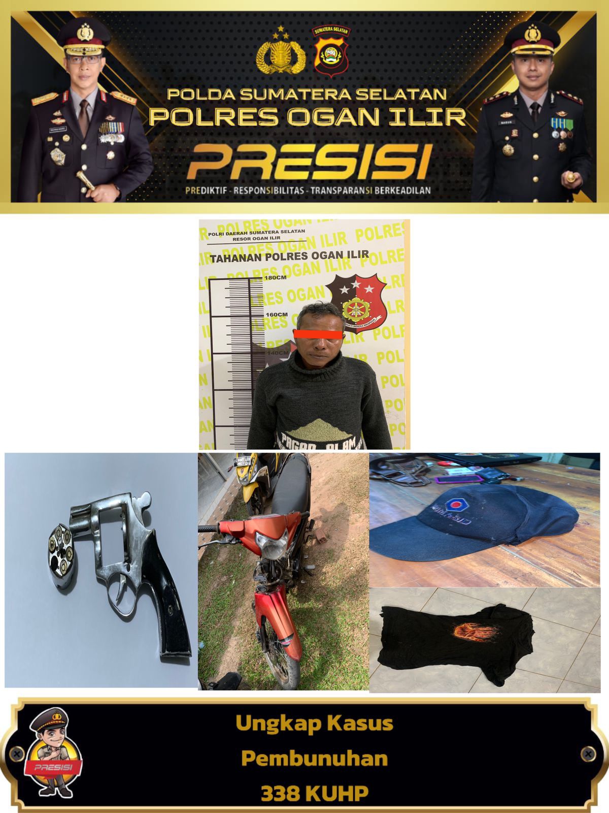 Senin 19 Agustus 2024 sekira pukul 20.30 Wib, Kasat Reskrim AKP M. ILHAM, SIK, MM., mendapatkan informasi dari Kapolsek Tanjung Batu bahwa pelaku Pembunuhan sebagaimana dimaksud dalam pasal 338 KUHP sedang berada dirumahnya di Desa Sentul Kec. Tanjung Batu Kab. Ogan ilir, atas informasi tsb Kasat Reskrim AKP M. ILHAM, SIK, MM., memerintahkan Tim Macan OI Opsnal Pidum Satreskrim untuk menuju Polsek Tanjung Batu guna ditindak lanjuti, kemudian tim Macan OI Opsnal Pidum Satreskrim yg dipimpin langsung oleh Kanit Pidum IPDA ETTAH JULIANSYAH, SE., Bersama Kapolsek Tanjung Batu IPTU YUSRI MERIANSYAH, SH., Kanit Reskrim Polsek Tanjung batu IPDA FITRA HADI beserta personil Unit Reskrim Polsek Tanjung Batu langsung menuju Desa Sentul Kec. Tanjung Batu Kab. Ogan Ilir, pada saat tiba di Desa tsb tersangka sedang berada di Rumahnya dan saat diamankan tanpa melakukan perlawanan.